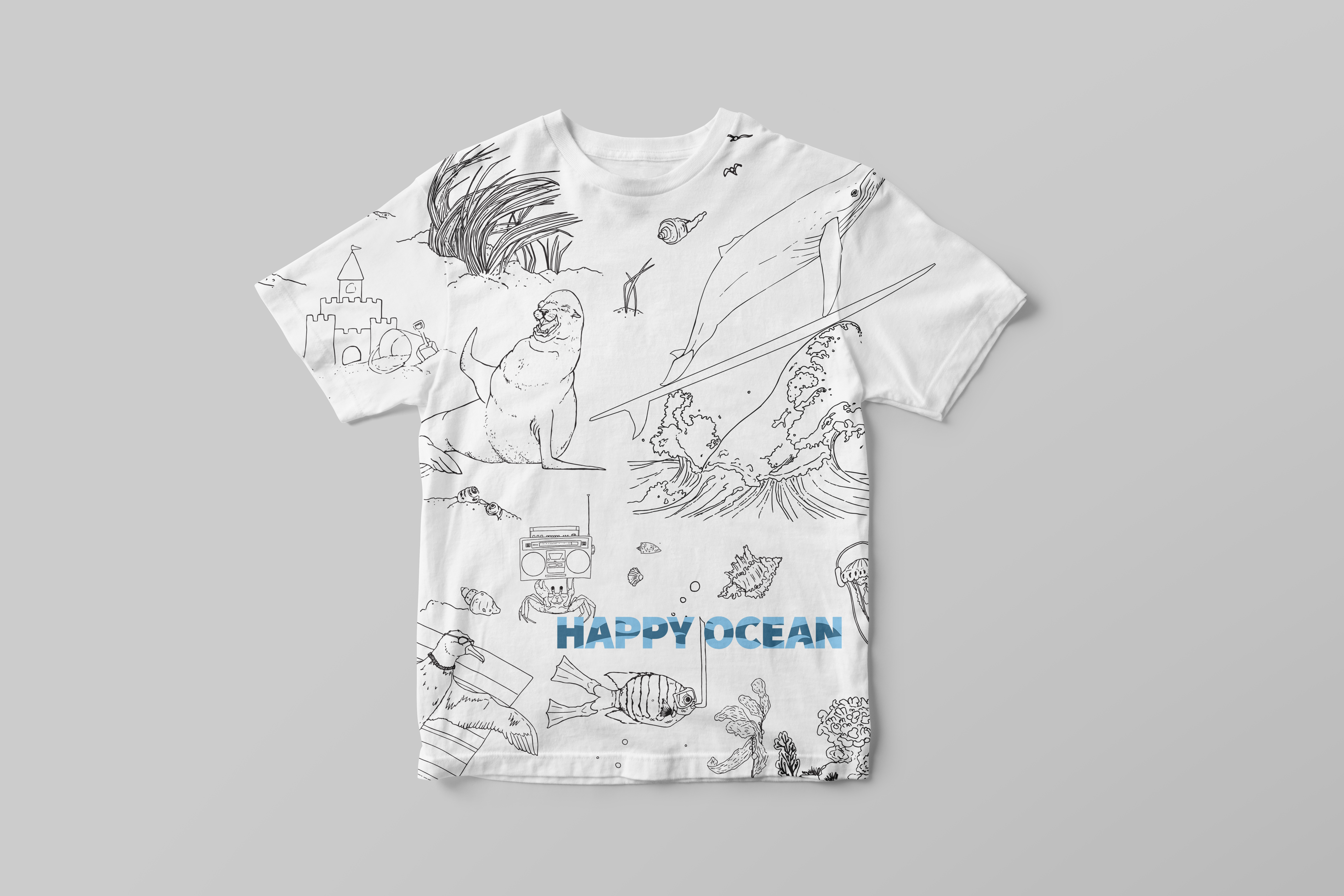 I came up with the concept for Happy Ocean after learning about the overwhelming amount of plastic pollution in our ocean, specifically, the rapidly expanding Great Pacific Garbage Patch. I felt appalled and wanted to do something about it, but I didn’t know where to start; everything seemed so huge and unsolvable. Fear and anxiety-based imagery and messages were not inspiring to me. Instead, all I wanted to do was hide them when they appeared in my social media feeds. I found that I was far more receptive to news articles and movements that spoke of hope instead of doom. Articles and organizations that presented possible solutions to the crisis of plastic pollution actually inspired me to get involved. Happy Ocean was born out of this desire to proactively engage with and explore the urgent issue of plastic pollution through a lens of optimism.